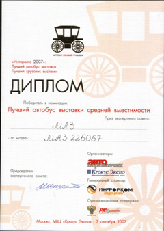 Подведены итоги конкурса на лучший грузовик и автобус выставки "Интеравто-2007", которая проходила в Москве с 29 августа по 4 сентября.